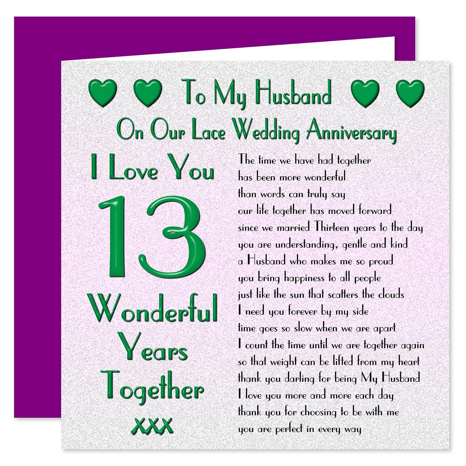 10 Wonderful Anniversary Gifts For Husband On Completing 13 Years Of Marriage 2018 from ds393qgzrxwzn.cloudfront.net As lace is a textile too, it opens up more avenues for the 13th anniversary gift. Vintage cotton lace and denim anniversary card suitable for 2nd, 13th wedding anniversary. Youre the reason why i wake up every morning with a smile. Funny 13th anniversary card, 4745 days married card funny anniversary card husband wife him her 13 years card funny wedding anniversary card. Younique designs 13 year anniversary coffee mug for him, 13 ounces, 13th wedding anniversary cup for husband, thirteen years, thirteenth year, 13th year 4.5 out of 5 stars 29 $19.97 $ 19. Choose a thirteenth anniversary gift of a faux fur animal from among hundreds of choices on wildlife treasures. The 13th wedding anniversary is the lace anniversary. 5 out of 5 stars.